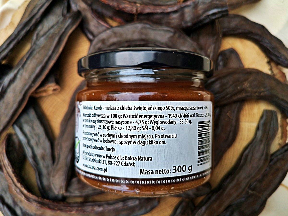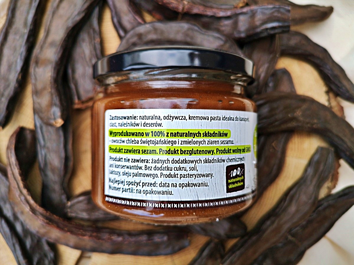 WŁAŚCIWOŚCI: naturalna słodka pasta, która w smaku przypomina trochę popularną pastę czekoladową do chleba, powstaje z karobu i tahini, źródło wielu wartości odżywczych m.in. żelaza, wapnia, fosforu, magnezu, potasu,