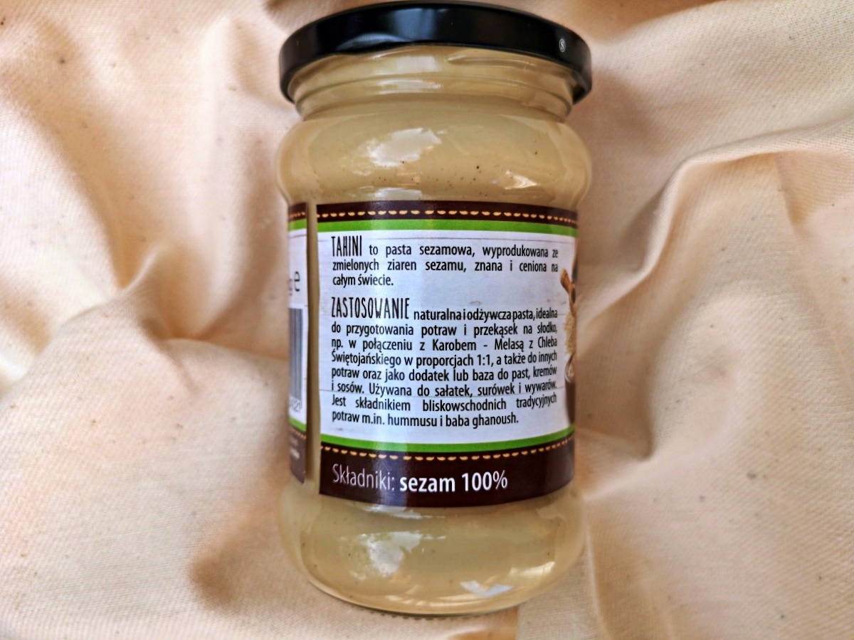 PIERWSZE WRAŻENIE: smaczna, naturalna pasta sezamowa, o płynnej konsystencji, sprawdzi się w każdej kuchni na wiele sposobów – jako dodatek do napojów oraz potraw na ciepło i zimno. Najpopularniejszą potrawą, do której używa się tahini jest oczywiście hummus.