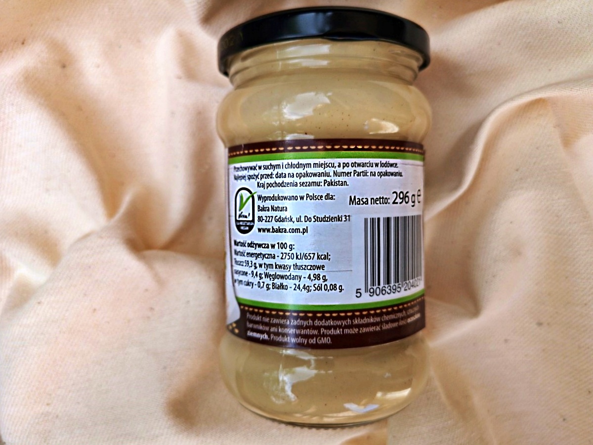 Bakra Tahini Pasta sezamowa naturalna. Pasta sezamowa 100% z sezamu. Bez zbędnych dodatków. Do przyrządzania sosów, sałatek, potraw i deserów.