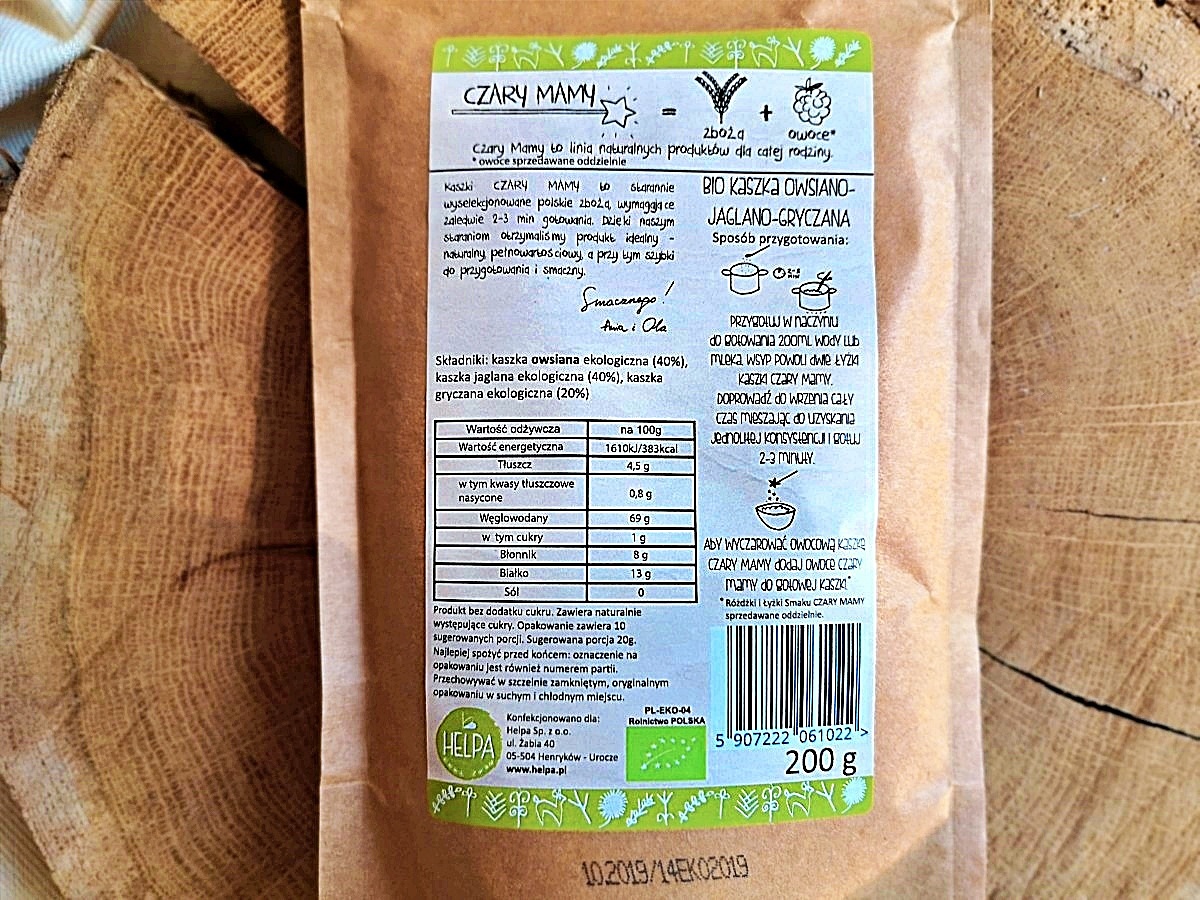 Helpa Kaszka owsiano – jaglano – gryczana. Starannie wyselekcjonowane i rozdrobione zboża umożliwiają szybkie przygotowanie pełnowartościowego posiłku.