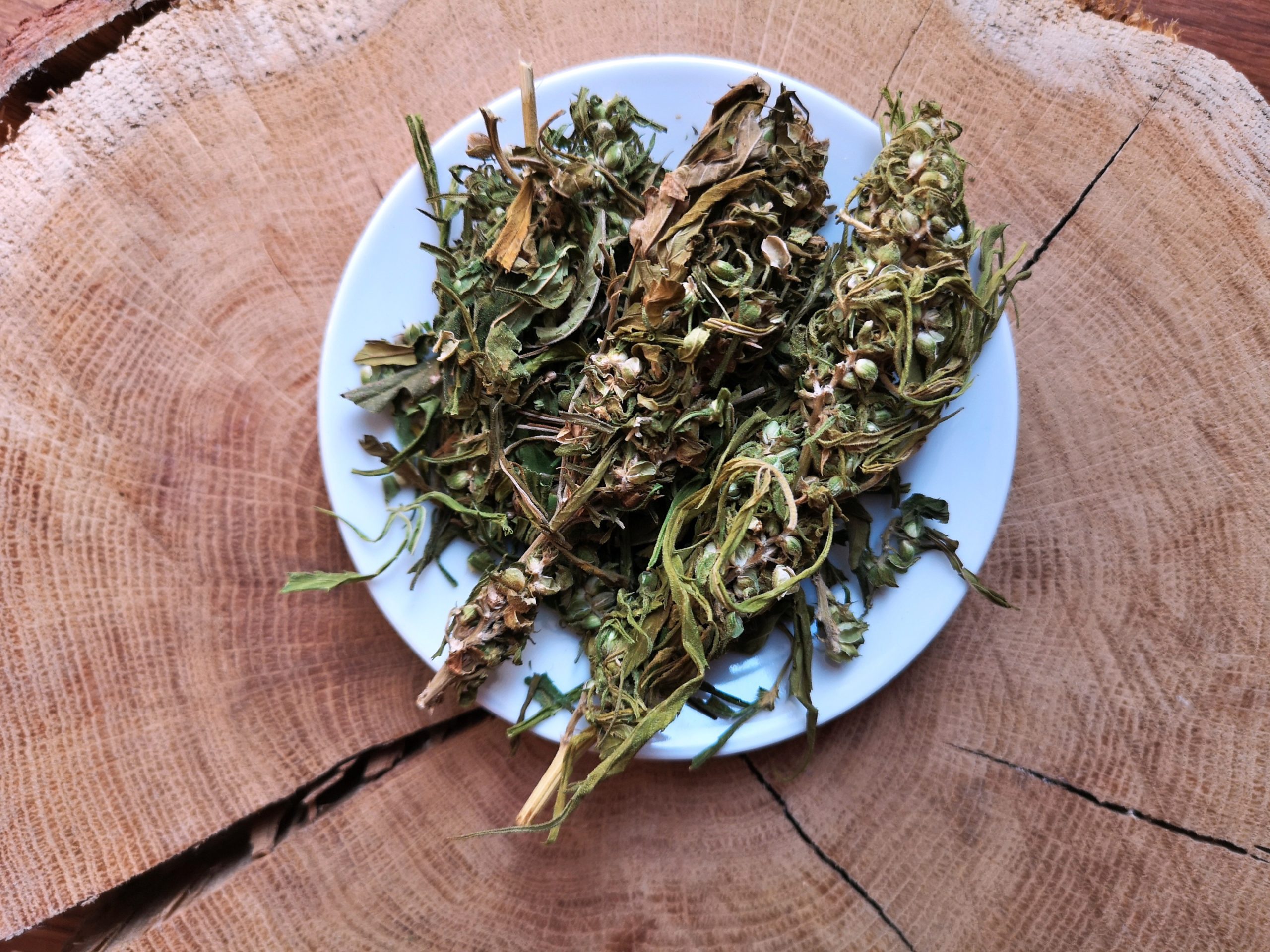 suszone liście, kwiatostany i nasiona konopi włóknistych