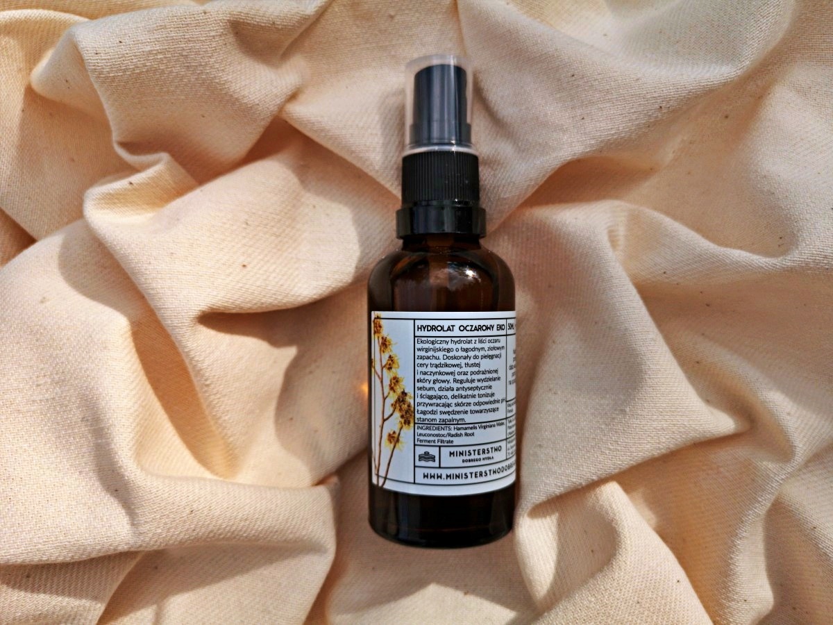 Ministerstwo Dobrego Mydła Hydrolat oczarowy. Ekologiczny. Dedykowany skórze problemowej, tłustej – łagodzi stany zapalne, koi podrażnienia.