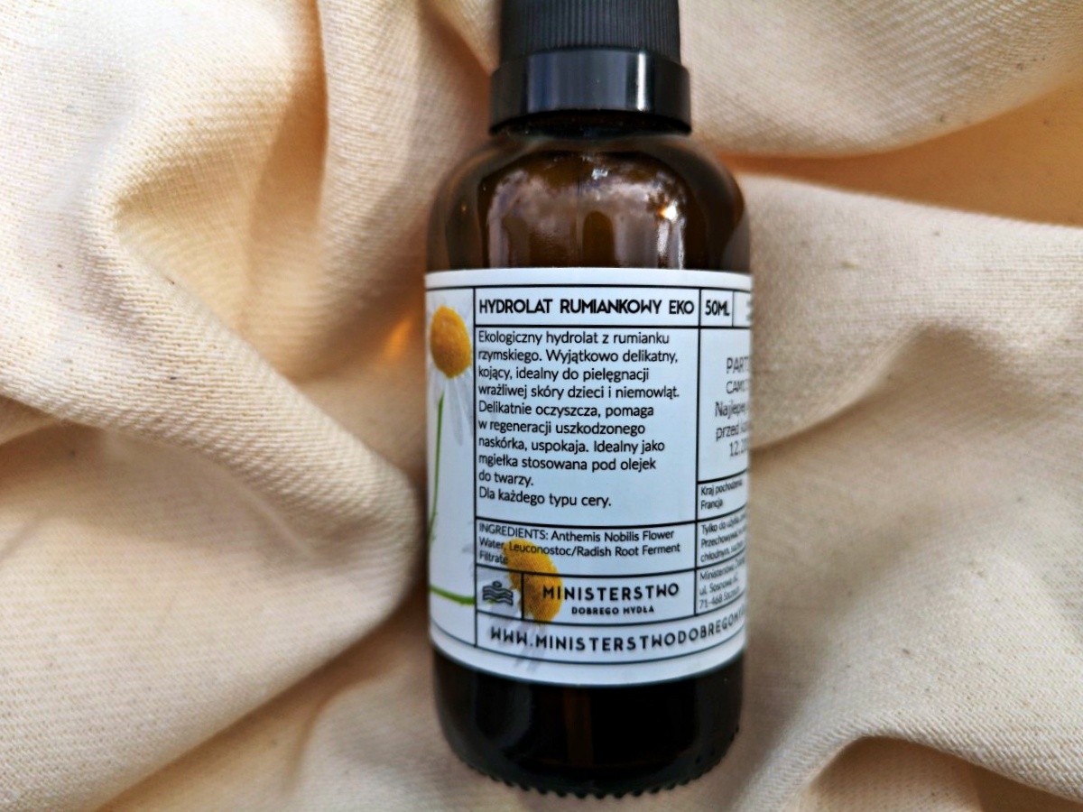 PRODUCENT: https://www.ministerstwodobregomydla.pl/hydrolat-rumianek