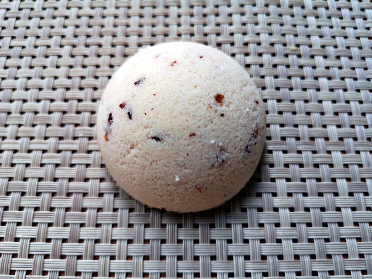 WŁAŚCIWOŚCI: wrzucona do wody rozpuszcza się i musuje, zawiera olejki i masła, dlatego świetnie nawilża i odżywia skórę, działa również aromaterapeutycznie – redukuje stres i napięcia