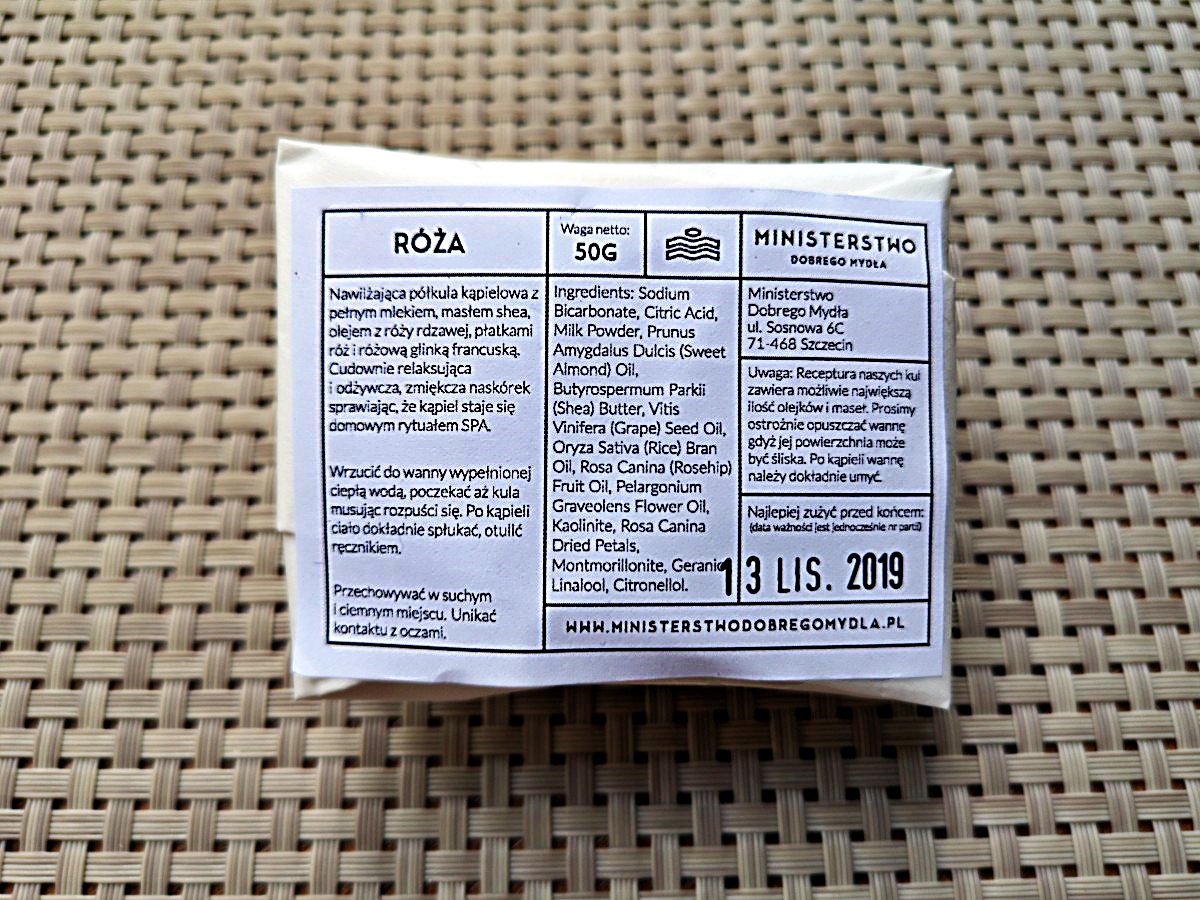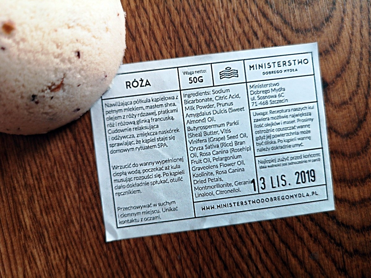 Ministerstwo Dobrego Mydła Półkula Róża z różową glinką francuską. Zawiera susz i olejek eteryczny z róży, nawilżające oleje i masła. Łagodzi stres i napięcia.