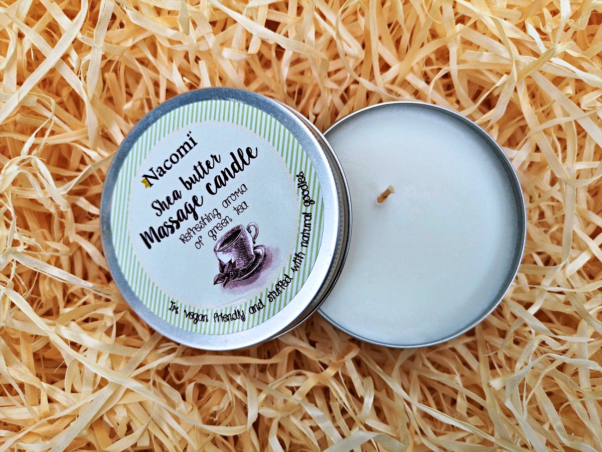 Nacomi Balsam w świecy Zielona herbata. Intensywnie nawilża, natłuszcza i regeneruje skórę. Odświeżający zapach odpręża ciało i umysł.