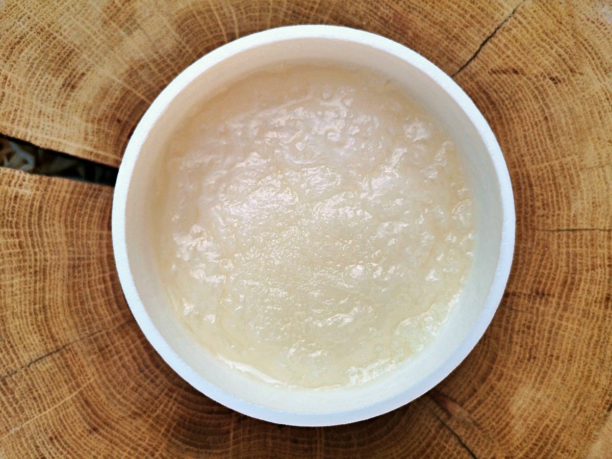 KONSYSTENCJA: zbita, twarda w niskiej temperaturze, rozpuszcza się pod wpływem ciepła do postaci olejku