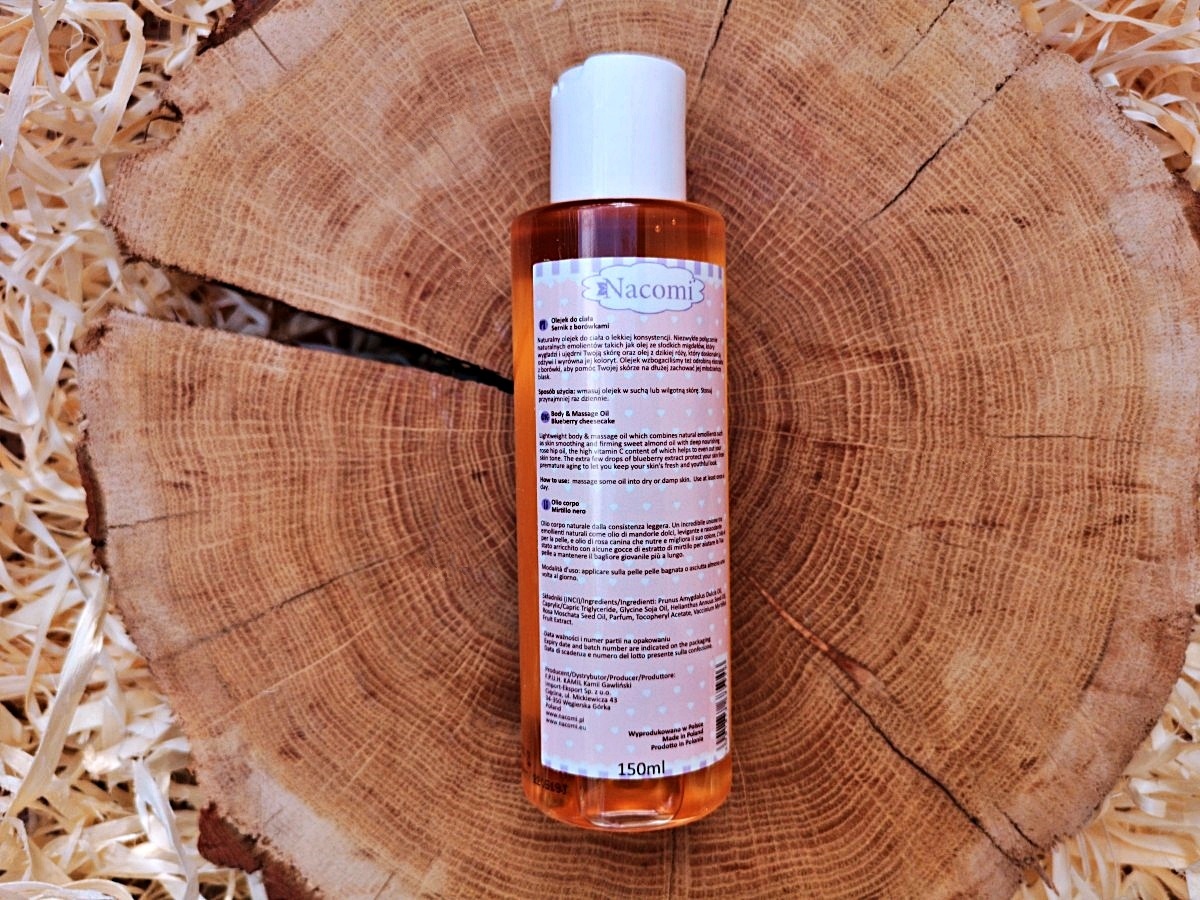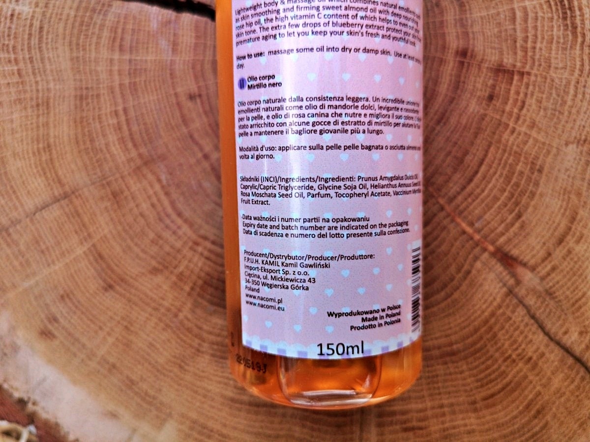 Nacomi Olejek wygładzający Borówka. Nawilża, wygładza i przeciwdziała starzeniu się skóry. Wzmacnia naczynia krwionośne, redukuje drobne blizny i rozstępy.