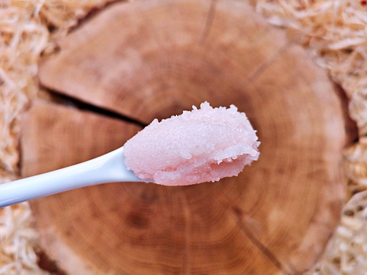 PIERWSZE WRAŻENIE: konsystencja gęstej pasty jest bardzo wygodna w użyciu – produkt nie wysypuje się i nabieramy go dokładnie tyle, ile potrzebujemy. Ma słodki, malinowy zapach, który długo pozostaje na skórze. Po peelingu dłonie są mocno nawilżone, wygładzone, świetnie radzi sobie z usuwaniem martwego naskóra. Warto opłukać się jedynie z drobin cukru i pozostawić na skórze te wszystkie cenne olejki, które ten produkt ma w swoim składzie, aby mogły głęboko odżywić i zregenerować naszą skórę.